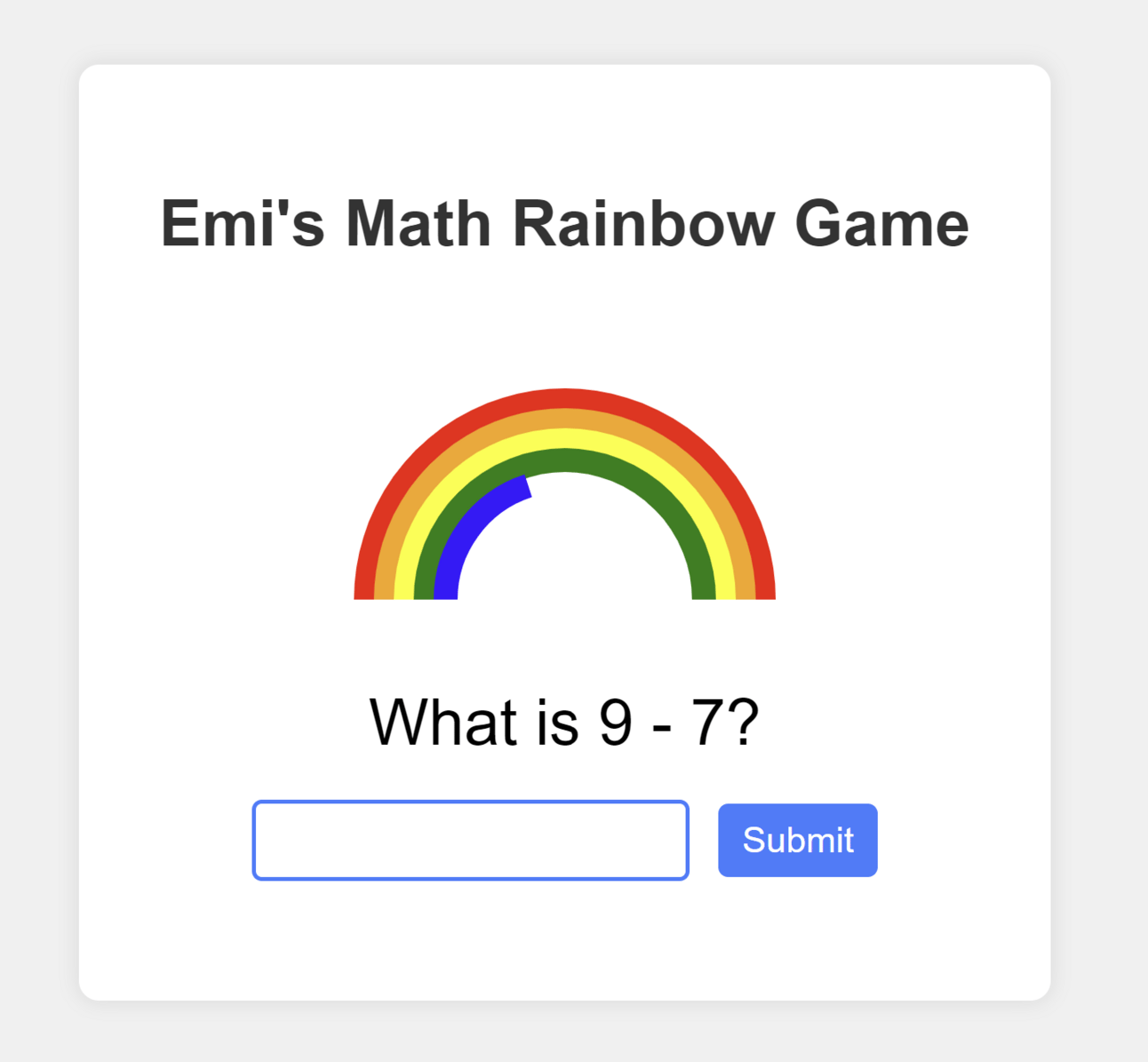 So I had the idea of creating a video game in which she would practice math and build rainbows with each correct answer.