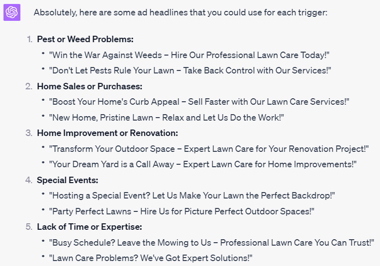 Now generate ad headlines for each of these buying triggers.