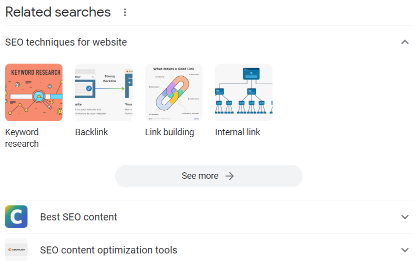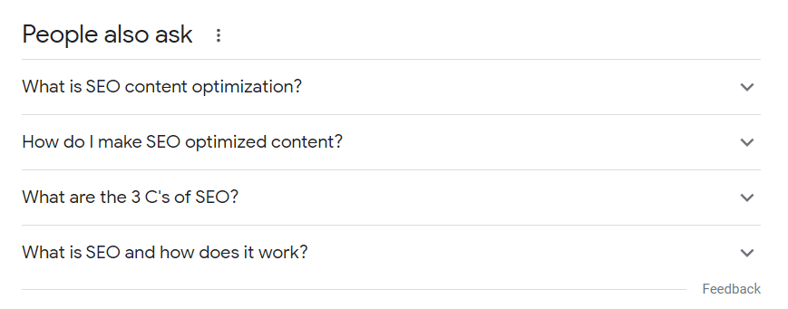 Many Google results include People Also Ask (PAA) options, which are great for understanding what other questions your target users may want answers to.