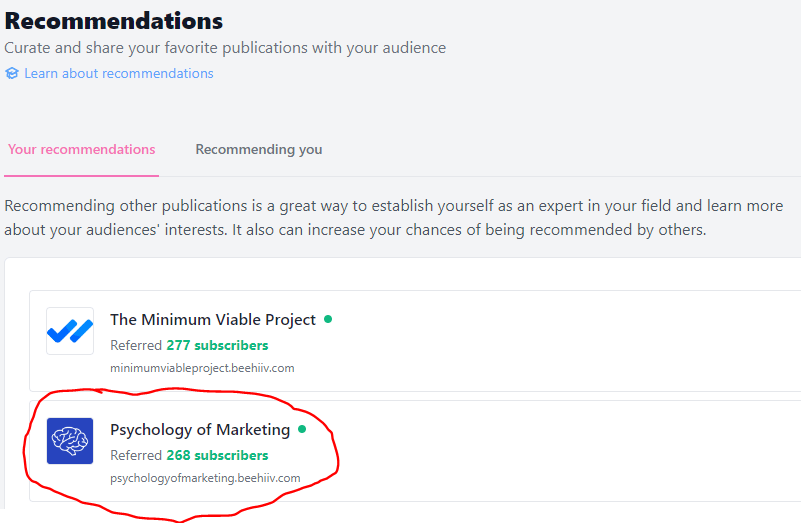 How it works: The Psychology of Marketing appears as a recommendation in the user flow when a user subscribes to one of the partnering newsletters - including Unicorn Growth Strategies: